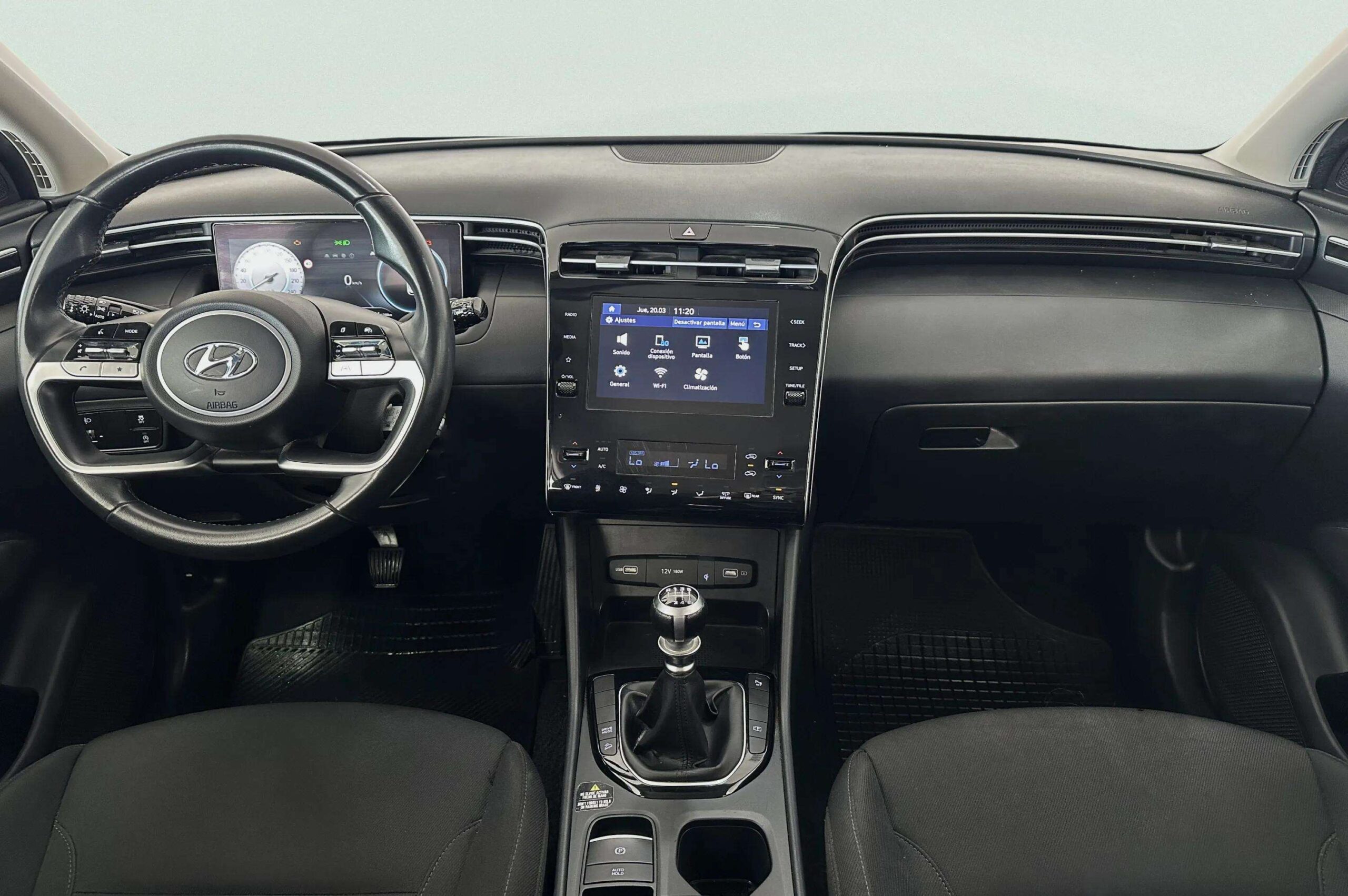 El interior del Hyundai Tucson proporciona una sensación de amplitud y ergonomía bien resuelta. El puesto de conducción ofrece buena visibilidad, mandos intuitivos y materiales resistentes que reflejan un enfoque hacia el confort y la funcionalidad.